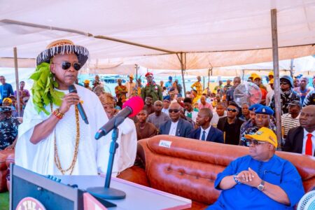 Governor Ademola Adeleke at Iwude Ijesha 2025 welcomed by roaring crowd honoured by tradition.